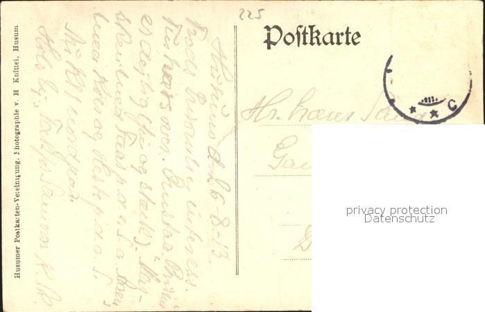 71570410 alte Postkarte Husum Nordfriesland Friesien vom Asmussen-Woldsen-Brunnen postalisch gelaufen Erhaltung siehe scans KatCode: 11110001054056