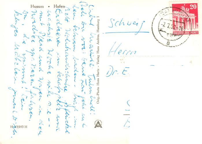 73872569 alte Postkarte Husum Nordfriesland Hafenpartie postalisch gelaufen Erhaltung siehe scans [WerneD78] KatCode: 11110001054056