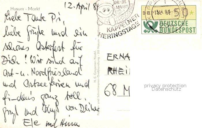 72895727 alte Postkarte Husum Nordfriesland Markt Brunnen Figur postalisch gelaufen Erhaltung siehe scans [FriedD77] KatCode: 11110001054056