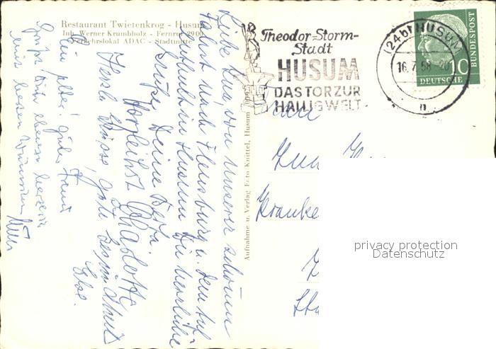 72067346 alte Postkarte Husum Nordfriesland Restaurant Twietenkrog bei Nacht postalisch gelaufen Erhaltung siehe scans KatCode: 11110001054056