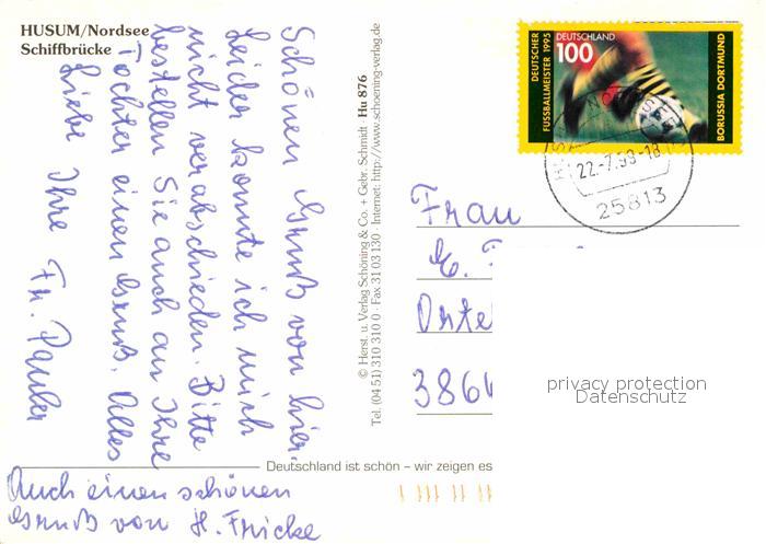 72863760 alte Postkarte Husum Nordfriesland Schiffbruecke Motorboot Uferstrasse postalisch gelaufen Erhaltung siehe scans [FriedD77] KatCode: 11110001054056