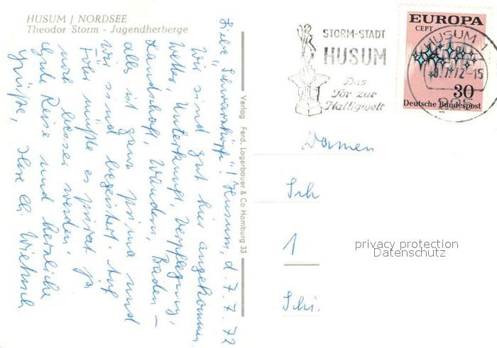 72966365 alte Postkarte Husum Nordfriesland Theodor Storm Jugendherberge postalisch gelaufen Erhaltung siehe scans [NatalD47] KatCode: 11110001054056