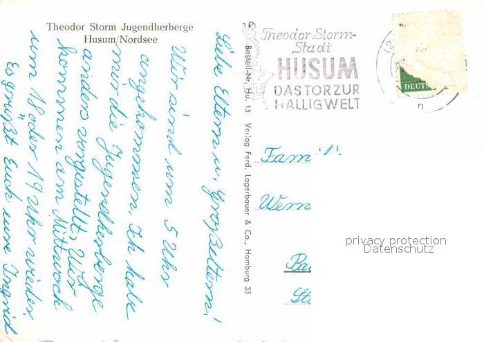 72721994 alte Postkarte Husum Nordfriesland Theodor Storm Jugendherberge postalisch gelaufen Erhaltung siehe scans [LiesaD40] KatCode: 11110001054056