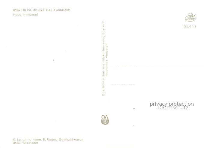 73762946 Hutschdorf Gaestehaus Pension Haus Immanuel postalisch nicht gelaufen Erhaltung siehe scans [FriedD77] KatCode: 11110009477157