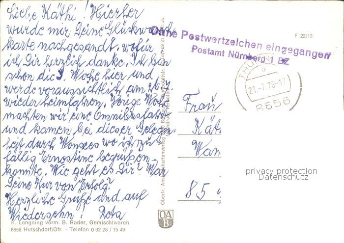 72074511 alte Postkarte Hutschdorf Hallenbad postalisch gelaufen Erhaltung siehe scans KatCode: 11110009477157