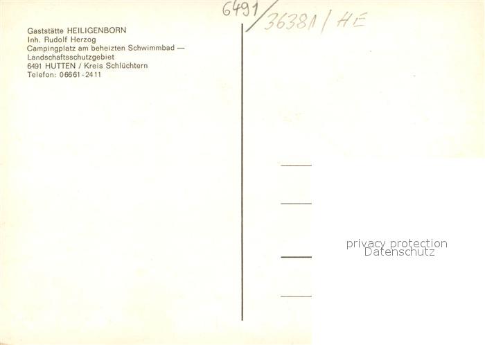 73707123 Hutten Gaststaette Heiligenborn Campingplatz Schwimmbad postalisch nicht gelaufen Erhaltung siehe scans [LiesaD40] KatCode: 11110006435025