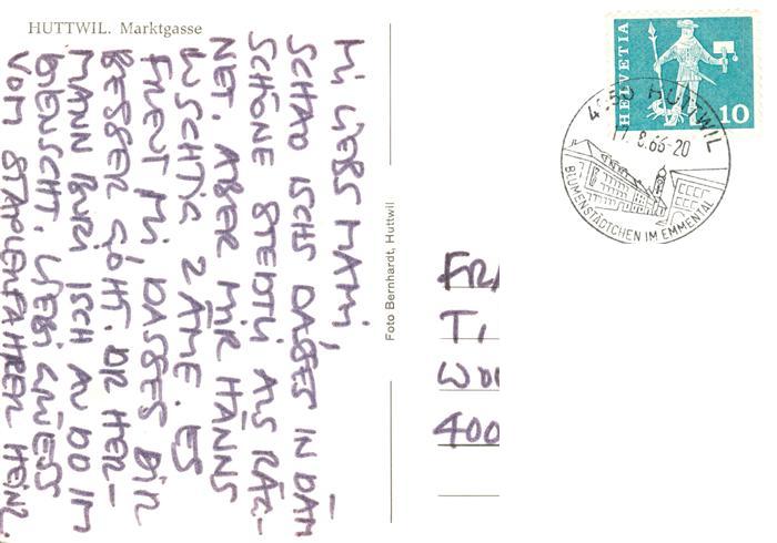 13874725 alte Postkarte Huttwil Huttwyl BE Marktgasse postalisch gelaufen Erhaltung siehe scans [WerneD78] KatCode: 11470060245832