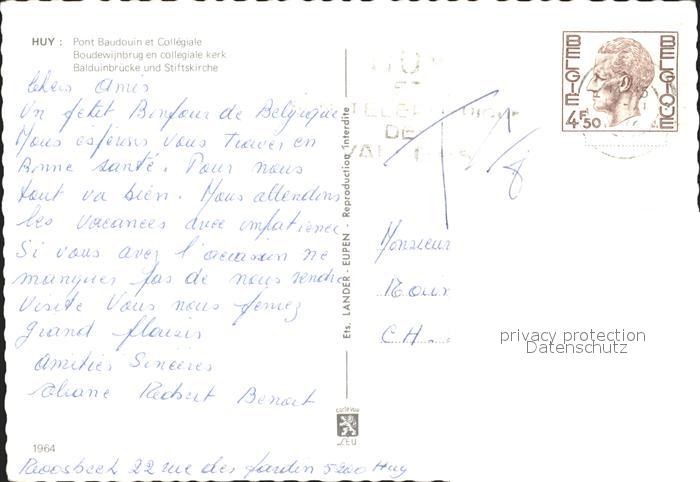 72355959 carte postale Huy la Meuse Pont Baudouin et Collegiate postalisch gelaufen Erhaltung siehe scans KatCode: 11070