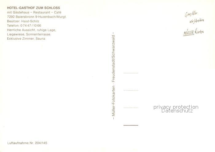 73320982 Huzenbach Hotel Gasthof zum Schloss Fliegeraufnahme postalisch nicht gelaufen Erhaltung siehe scans [WerneD78] KatCode: 11110008237004