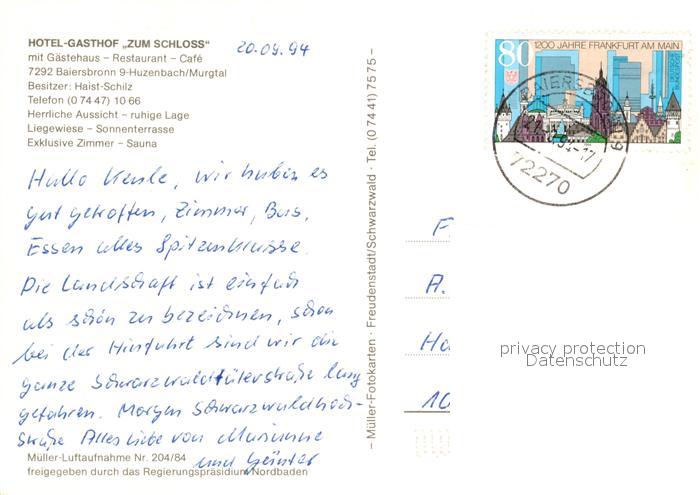 73228475 alte Postkarte Huzenbach Hotel Gasthof Zum Schloss Murgtal Fliegeraufnahme postalisch gelaufen Erhaltung siehe scans [FriedD77] KatCode: 11110008237004