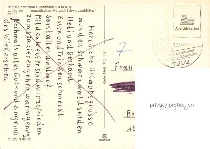 73575692 alte Postkarte Huzenbach Murgtal postalisch gelaufen Erhaltung siehe scans [LiesaD40] KatCode: 11110008237004