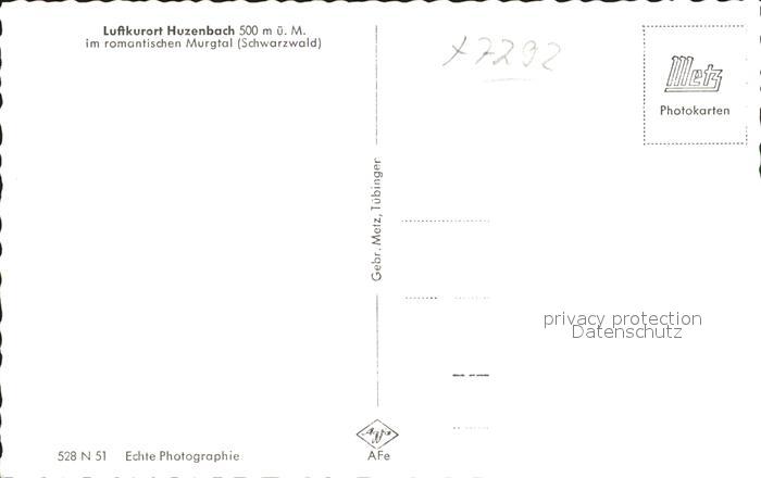 41768454 Huzenbach Panorama Luftkurort Murgtal Schwarzwald postalisch nicht gelaufen Erhaltung siehe scans KatCode: 11110008237004
