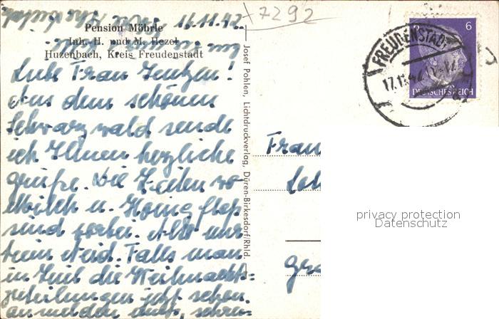 41801155 alte Postkarte Huzenbach Pension Moehrle postalisch gelaufen Erhaltung siehe scans KatCode: 11110008237004