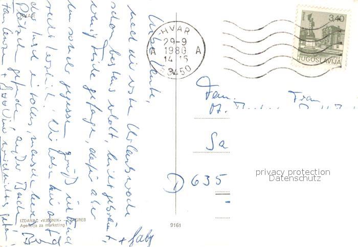 old postcard Hvar Bucht Hafen Fliegeraufnahme postalisch gelaufen Erhaltung siehe scans [FriedD77]