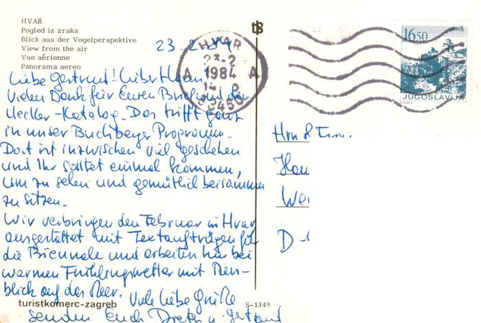 old postcard Hvar Croatia Fliegeraufnahme postalisch gelaufen Erhaltung siehe scans [WerneD78]