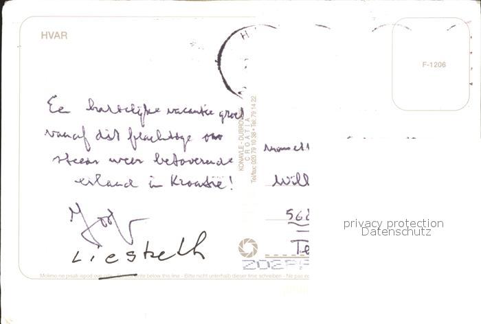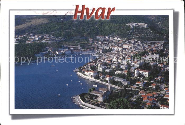 old postcard Hvar Fliegeraufnahme Hafen postalisch gelaufen Erhaltung siehe scans
