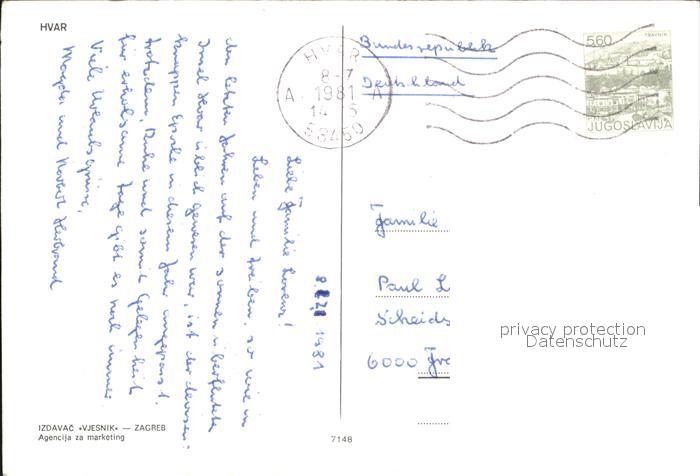 old postcard Hvar Luftbild postalisch gelaufen Erhaltung siehe scans