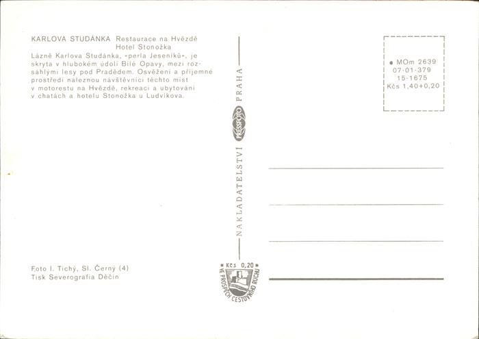 Hvezdarny Hotel Stonozka Restaurant postalisch nicht gelaufen Erhaltung siehe scans