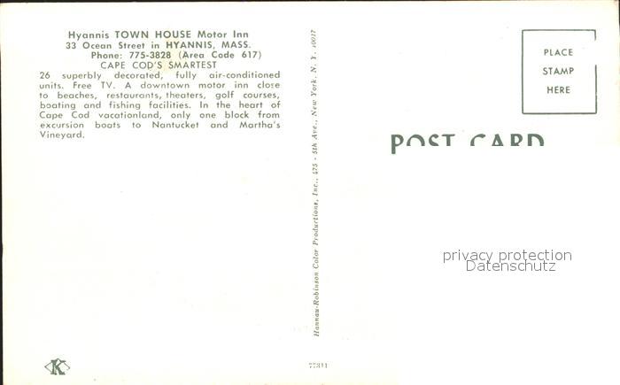 71955823 Hyannis Massachusetts Town House Motor Inn postalisch nicht gelaufen KatCode: 14140230000000