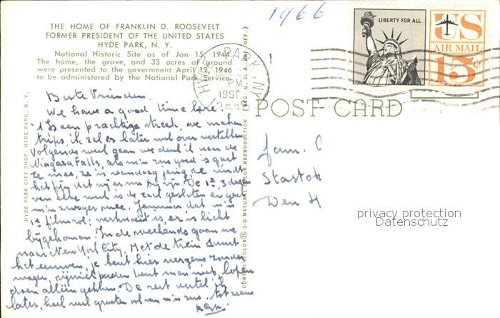 72230263 old postcard Hyde Park New York The Home of Franklin D Roosevelt postalisch gelaufen Erhaltung siehe scans KatCode: 14140340000000