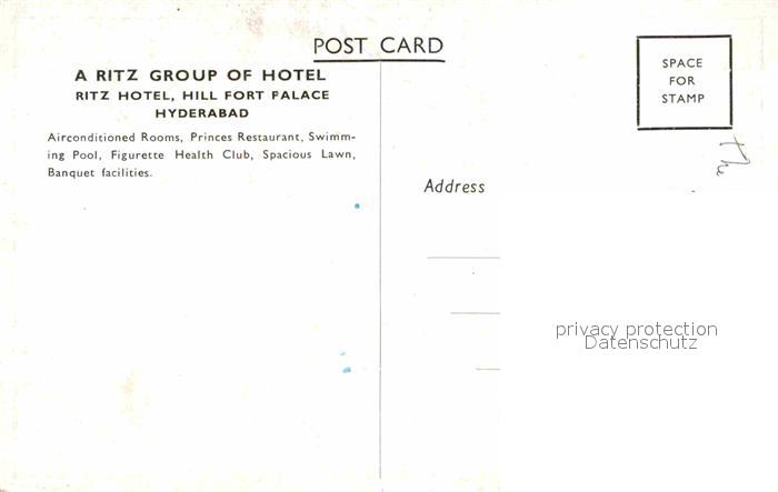Hyderabad Andhra Pradesh Ritz Hotel Hill Fort Palace postalisch nicht gelaufen Erhaltung siehe scans [FriedD77]