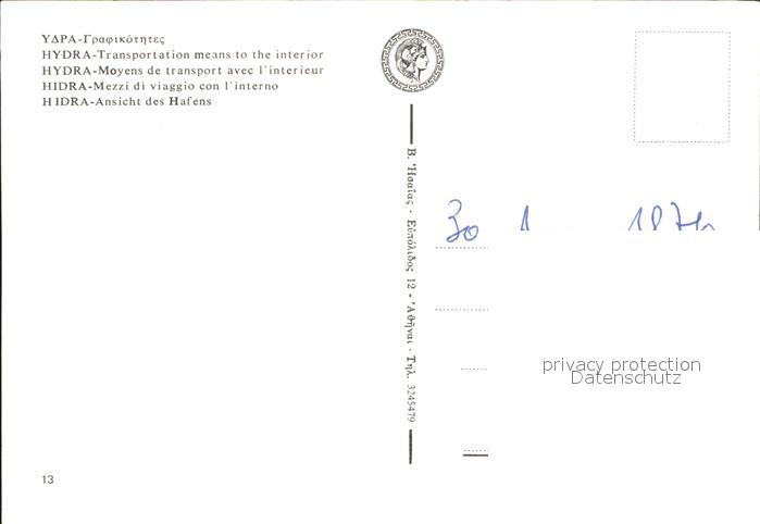 Hydra Greece Ansicht des Hafens Esel Lasttiere postalisch nicht gelaufen Erhaltung siehe scans