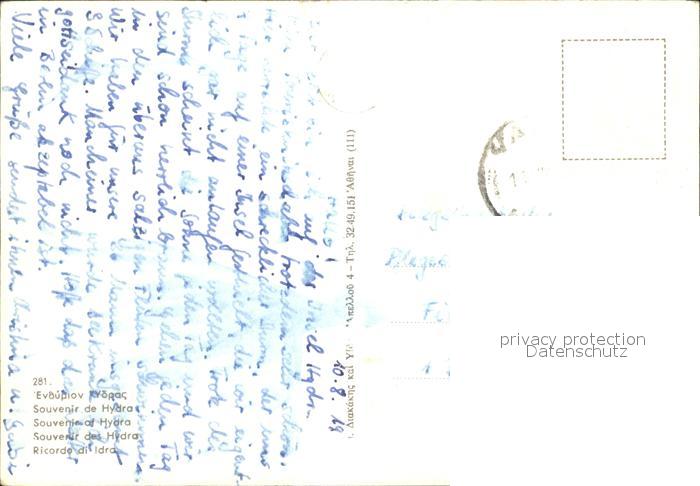 old postcard Hydra Greece Hafen Boote Teilansichten postalisch gelaufen Erhaltung siehe scans
