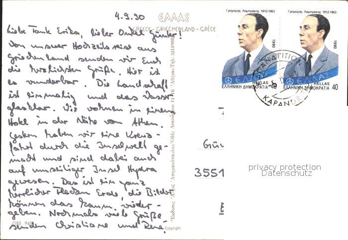 old postcard Hydra Greece Teilansichten Hafen Faehrschiff postalisch gelaufen Erhaltung siehe scans