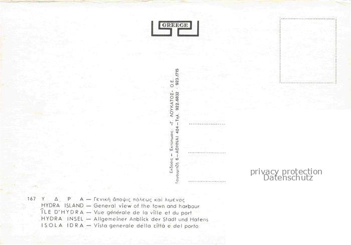 74042414 Hydra Ydra Hidra Idra Greece Hafen und Stadtblick postalisch nicht gelaufen Erhaltung siehe scans [WerneD78] KatCode: 11190