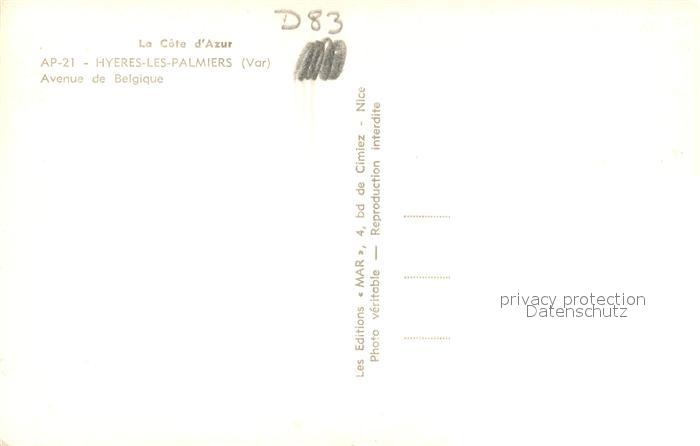 13551580 Hyeres les Palmiers Avenue de Belgique postalisch nicht gelaufen Erhaltung siehe scans [FriedD77] KatCode: 11170083283069