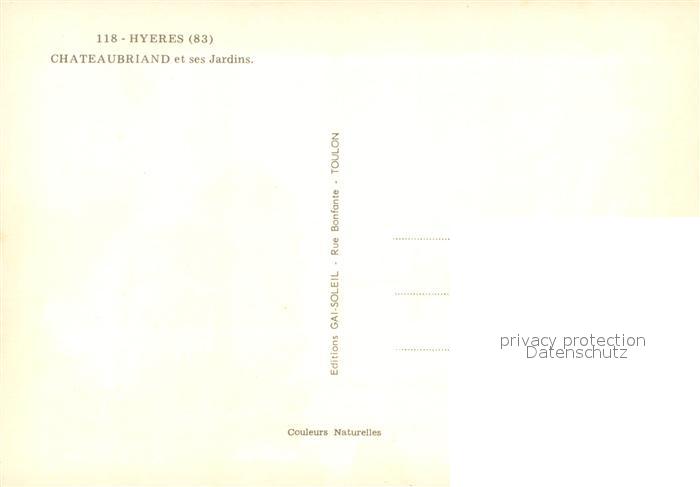 13660691 Hyeres les Palmiers Chateaubriand et ses Jardins postalisch nicht gelaufen Erhaltung siehe scans [WerneD78] Wern Katcode 11170083283069