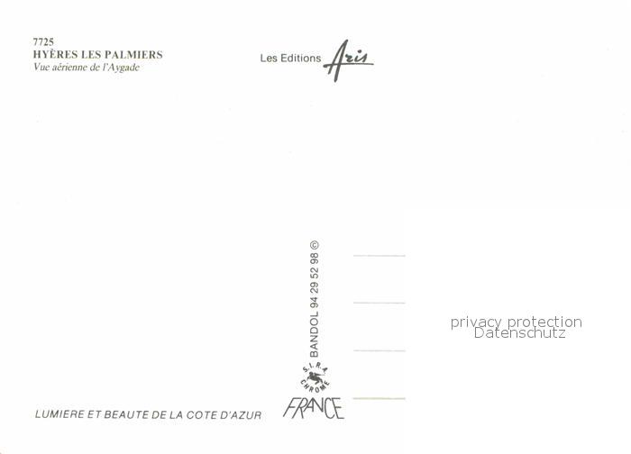 12757701 Hyeres les Palmiers Fliegeraufnahme postalisch nicht gelaufen Erhaltung siehe scans [AndreD76] KatCode: 11170083283069