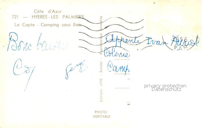 13553314 carte postale Hyeres les Palmiers La Capte Camping sous Bois postalisch gelaufen Erhaltung siehe scans [FriedD77] KatCode: 11170083283069