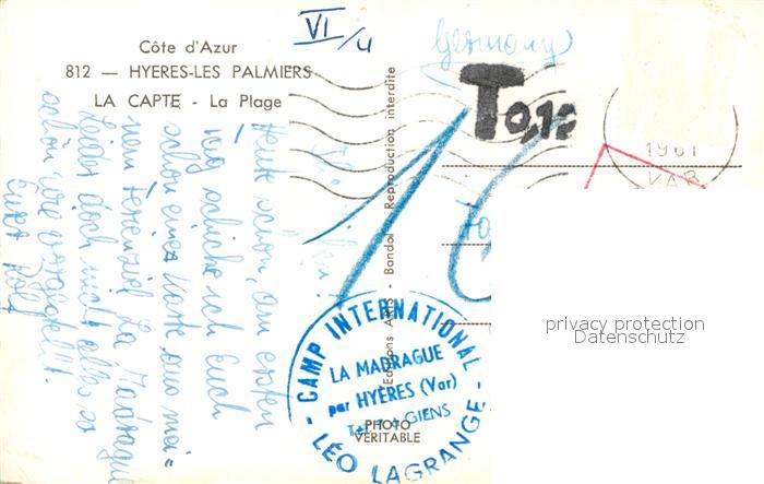 13016619 carte postale Hyeres les Palmiers La Plage postalisch gelaufen Erhaltung siehe scans [WerneD78] KatCode: 11170083283069