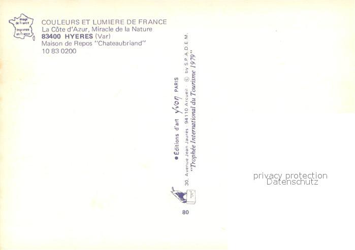 13660693 Hyeres les Palmiers Maison de Repos Chateaubriand postalisch nicht gelaufen Erhaltung siehe scans [WerneD78] Wern Katcode 11170083283069