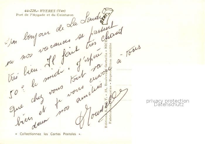 13525634 Hyeres les Palmiers Port de l’Aygade et du Ceinturon postalisch nicht gelaufen Erhaltung siehe scans [FriedD77] KatCode: 11170083283069