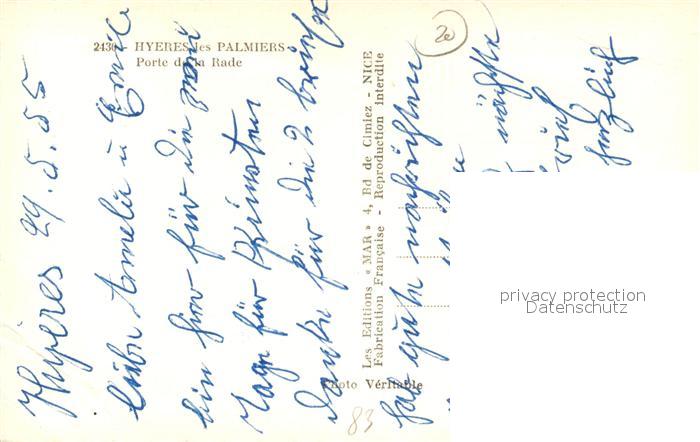 13484630 Hyeres les Palmiers Porte de la Rade postalisch nicht gelaufen Erhaltung siehe scans [FriedD77] KatCode: 11170083283069