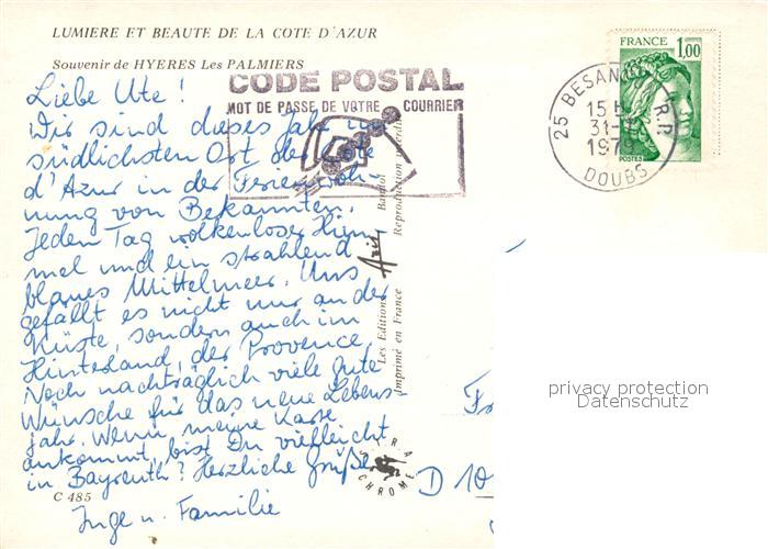 13265644 carte postale Hyeres les Palmiers Stadtansichten postalisch gelaufen Erhaltung siehe scans [KathaD81] KatCode: 11170083283069