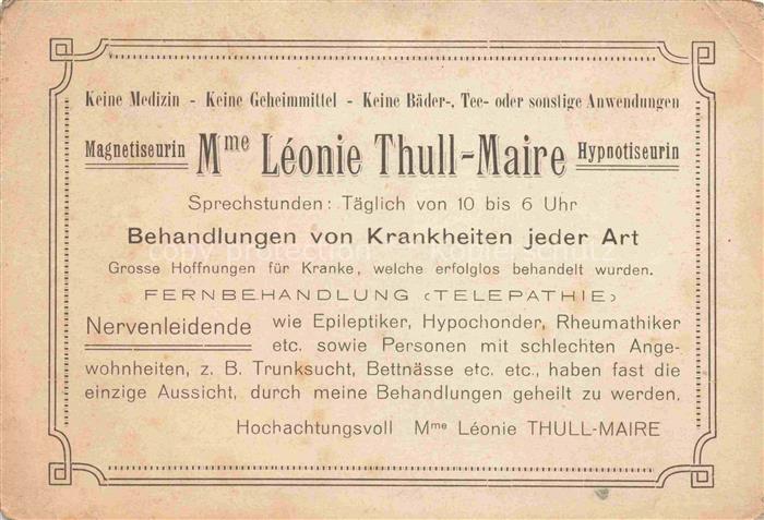 14105680 Hypnose Hypnosis Hipnosis Ipnosi– Leonie Thull Maire Magnetiseurin Fernbehandlung Telepathie postalisch nicht gelaufen Erhaltung siehe scans [SanaeD93] Sana Katcode 22080000001800