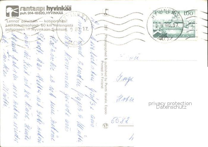 old postcard Hyvinkaeae Suomen Sipitsaan sipissivin Fliegeraufnahme postalisch gelaufen Erhaltung siehe scans