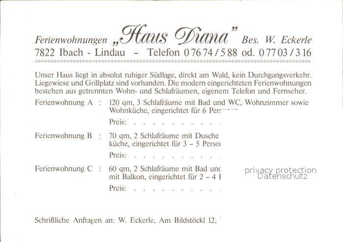 72443508 Ibach St Blasien Haus Diana postalisch nicht gelaufen Werbekarte (keine Postkarte) Erhaltung siehe scans KatCode: 11110008337059