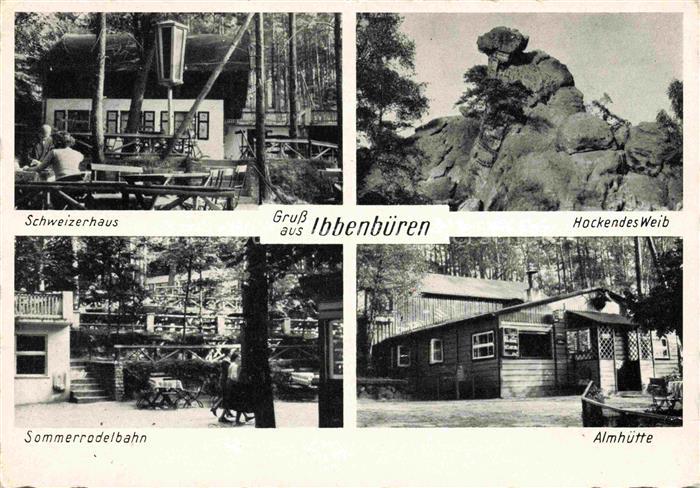 74097597 alte Postkarte Ibbenbueren NRW Schweizerhaus Hockendes Weib Sommerrodelbahn Almhuette postalisch gelaufen Erhaltung siehe scans [WerneD78] KatCode: 11110005566028