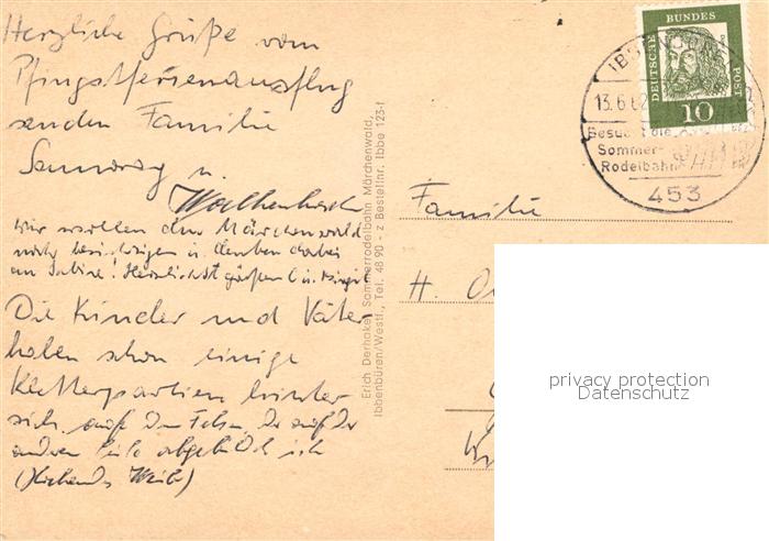 73040952 alte Postkarte Ibbenbueren Sommerrodelbahn Felsen Gaststaette postalisch gelaufen Erhaltung siehe scans [FriedD77] KatCode: 11110005566028