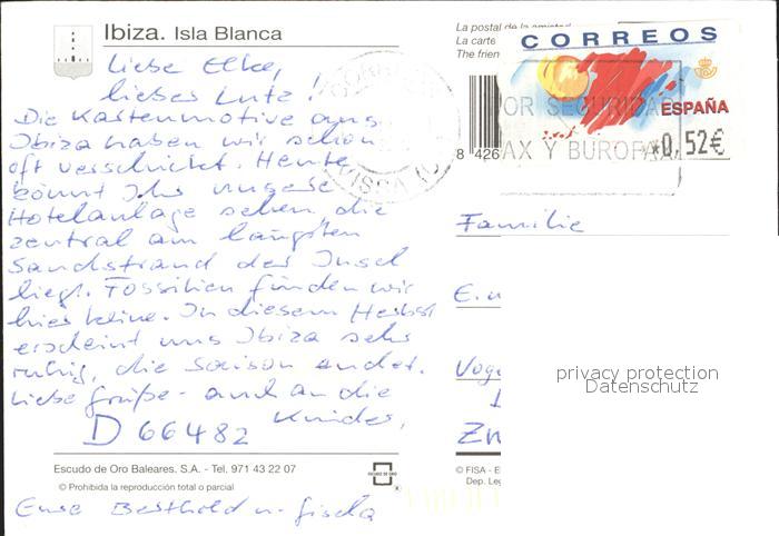 old postcard Ibiza Islas Baleares Aparthotel Garbi Playa Bossa postalisch gelaufen Erhaltung siehe scans