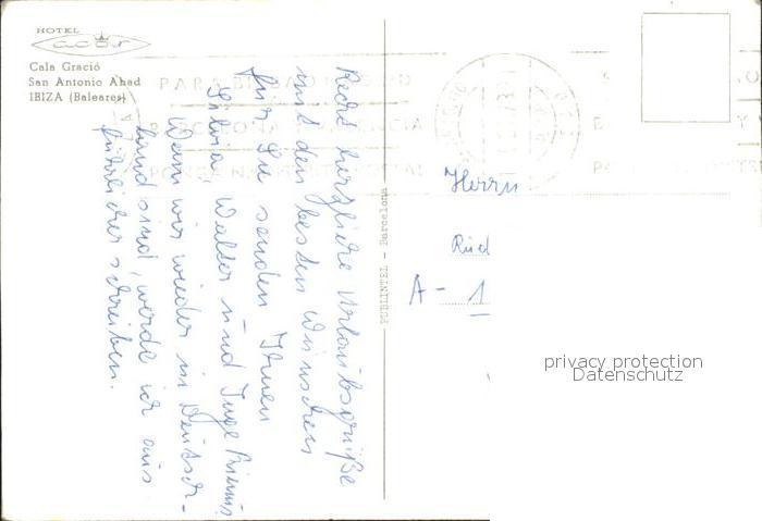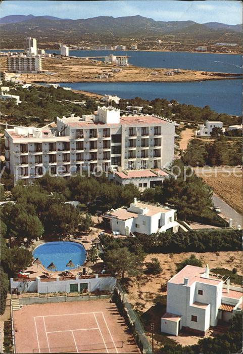 old postcard Ibiza Islas Baleares Cala Gracia Fliegeraufnahme Hotel postalisch gelaufen Erhaltung siehe scans