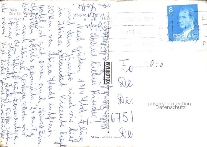 old postcard Ibiza Islas Baleares Cala San Vicenta postalisch gelaufen Erhaltung siehe scans