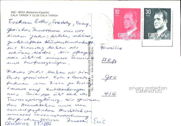 old postcard Ibiza Islas Baleares Cala Tarida Y Club postalisch gelaufen Erhaltung siehe scans