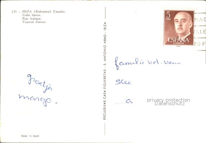 old postcard Ibiza Islas Baleares Calle tipica postalisch gelaufen Erhaltung siehe scans