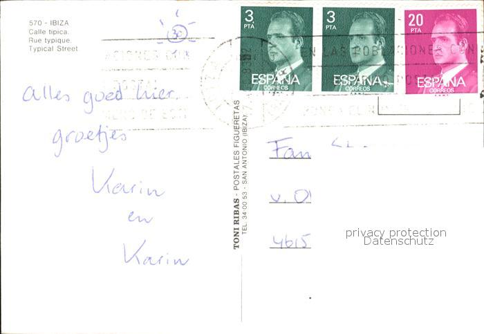 old postcard Ibiza Islas Baleares Calle tipica postalisch gelaufen Erhaltung siehe scans