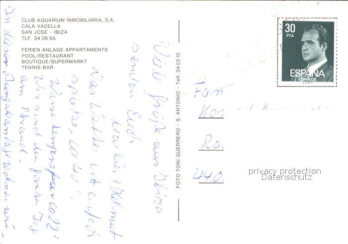 old postcard Ibiza Islas Baleares Club Aquarium Cala Vadella postalisch gelaufen Erhaltung siehe scans